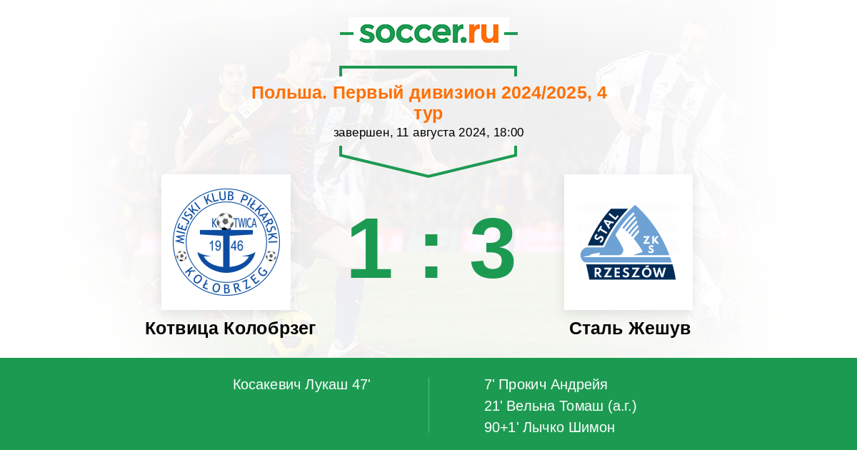 Котвица Колобрзег - Сталь Жешув: обзор матча 11 августа 2024
