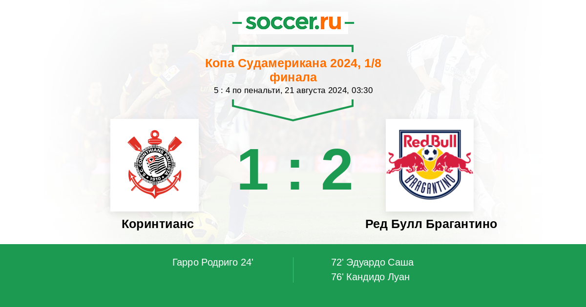 Коринтианс - Ред Булл Брагантино: обзор матча 21 августа 2024