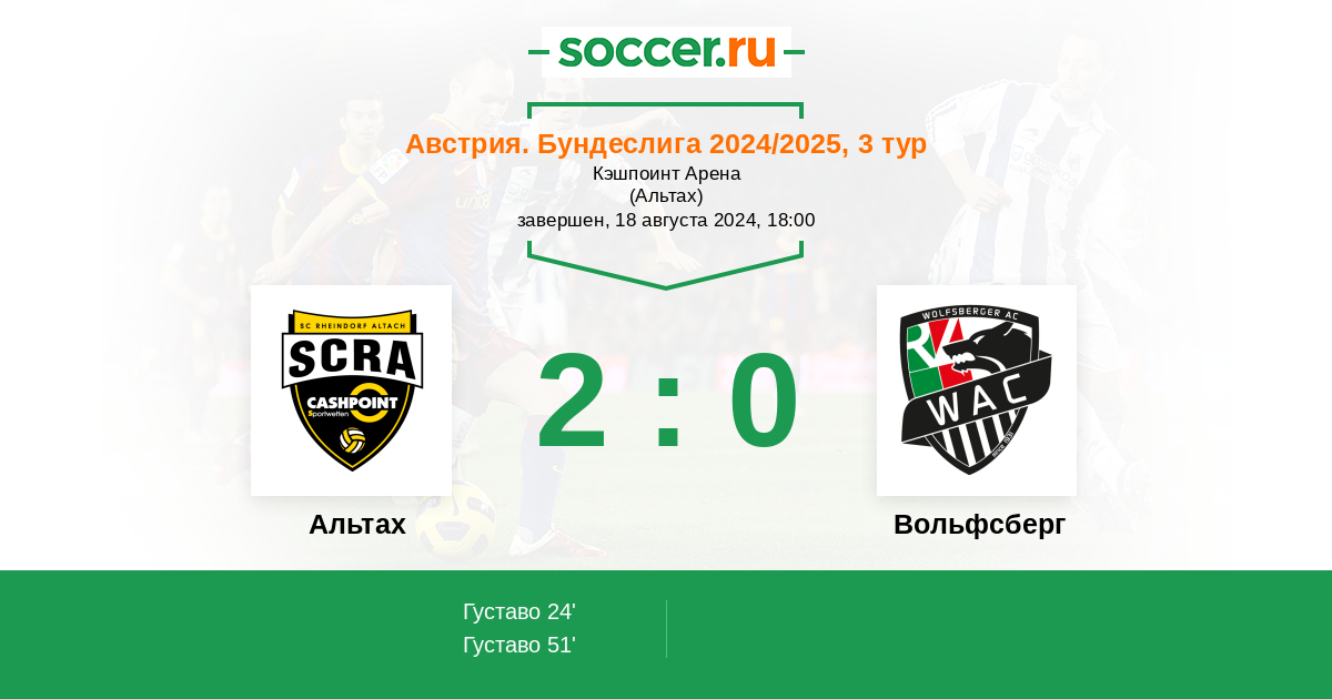 Альтах - Вольфсберг: обзор матча 18 августа 2024