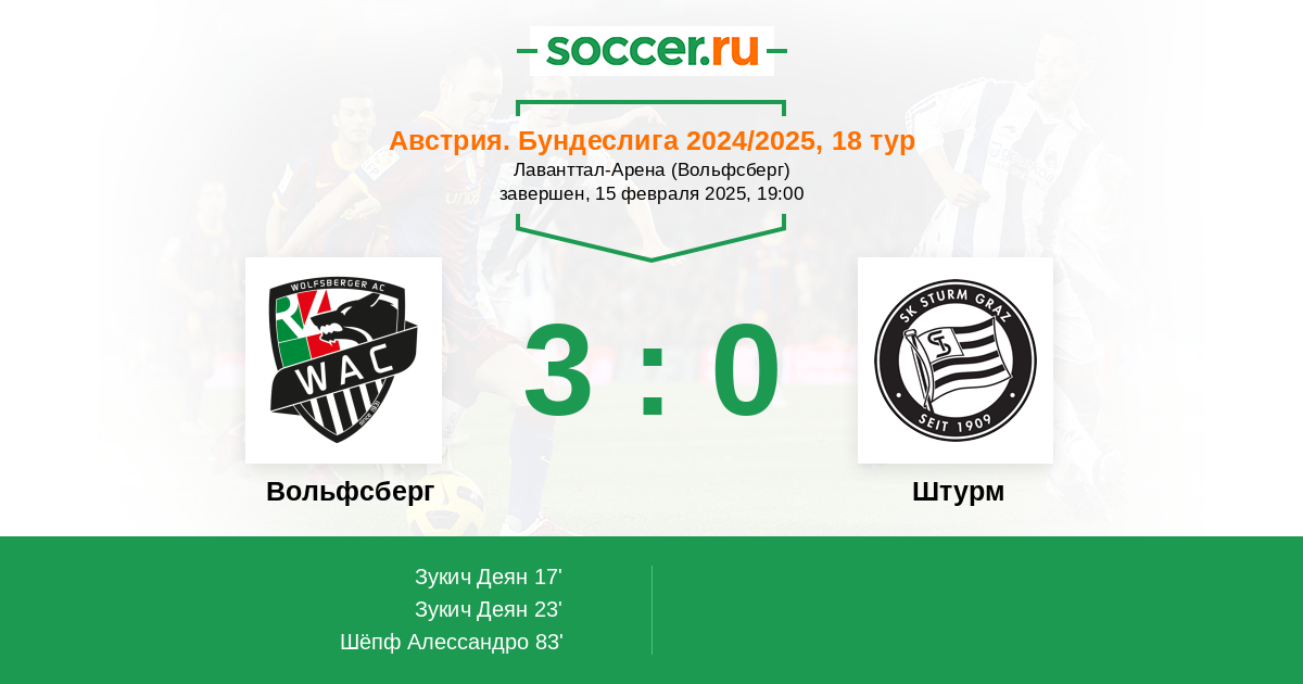 Вольфсберг - Штурм: обзор матча 15 февраля 2025