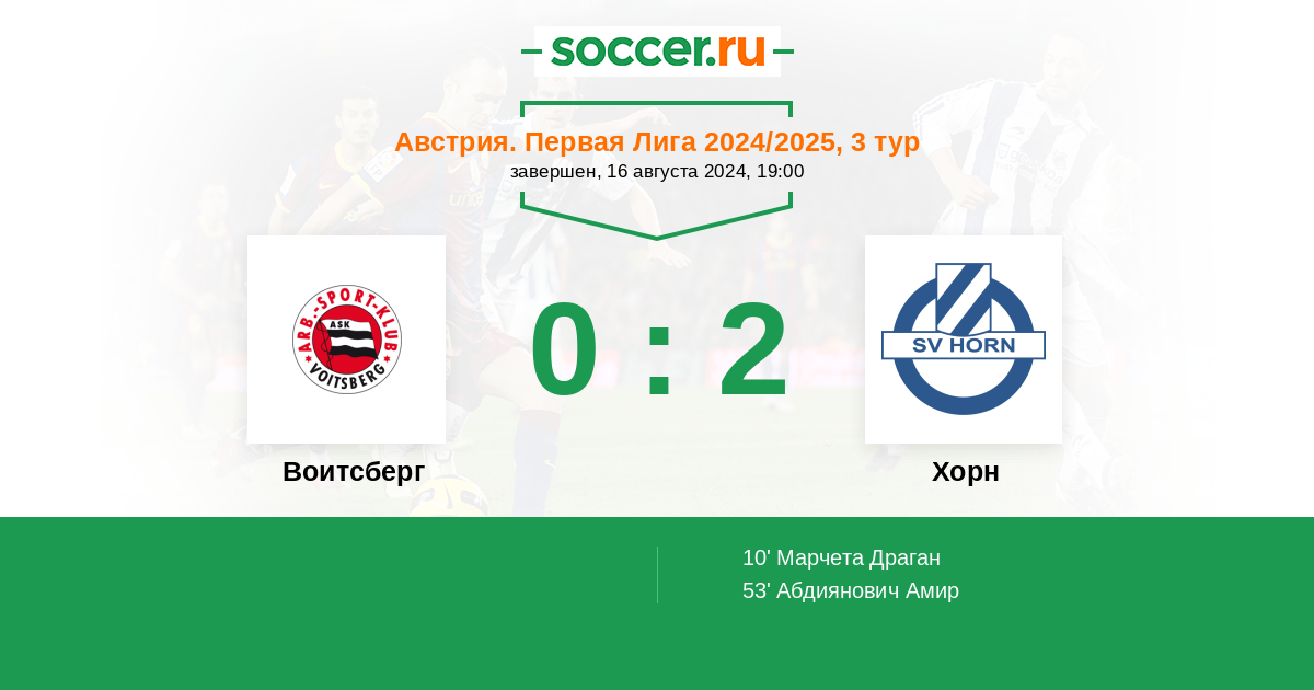 Воитсберг - Хорн: обзор матча 16 августа 2024