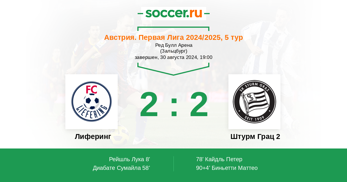 Лиферинг - Штурм Грац 2: обзор матча 30 августа 2024