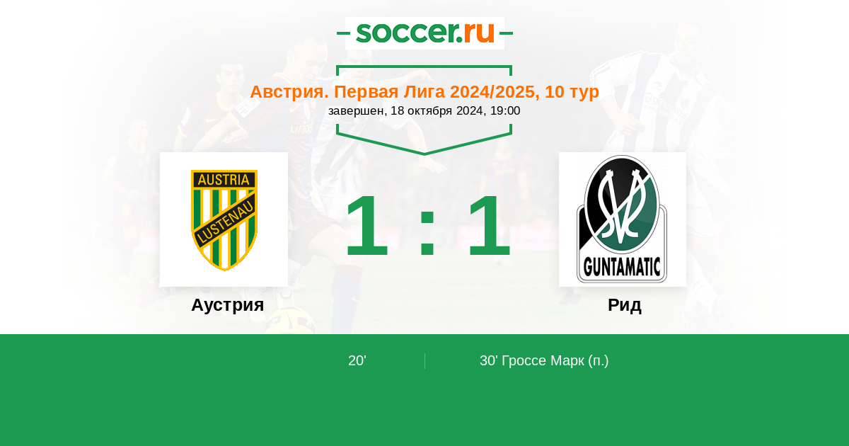 Аустрия - Рид: обзор матча 18 октября 2024