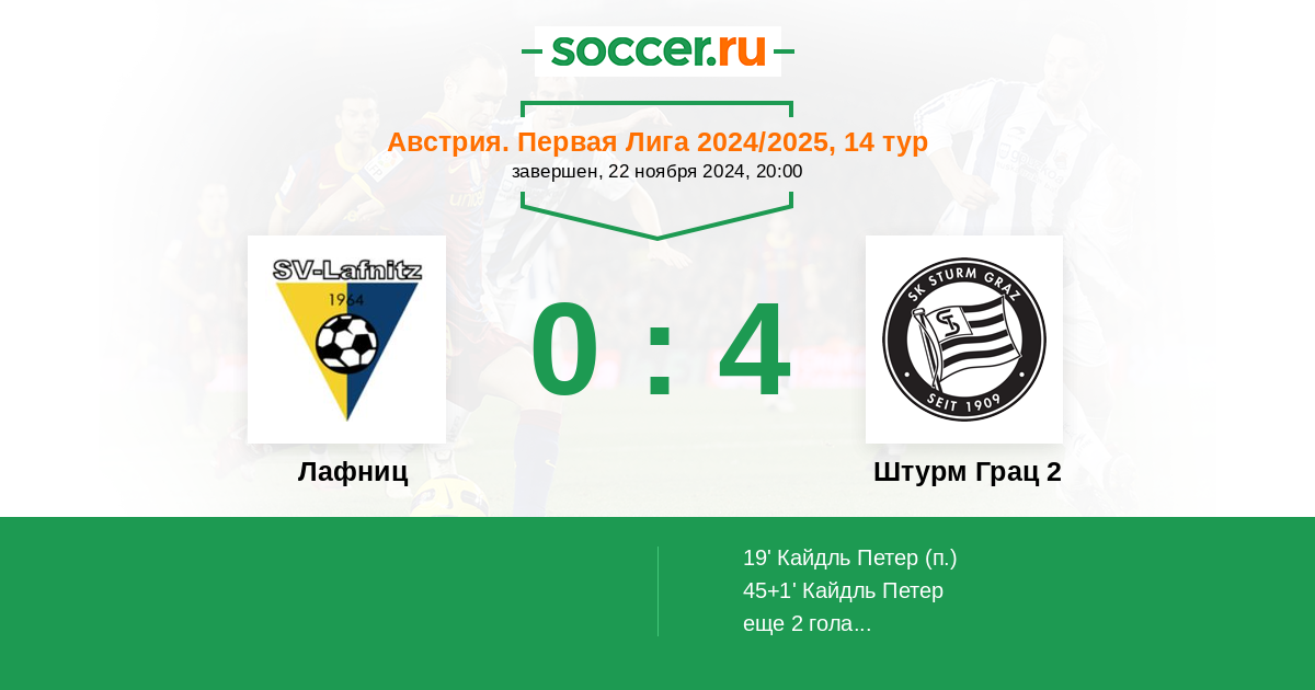 Лафниц - Штурм Грац 2: обзор матча 22 ноября 2024