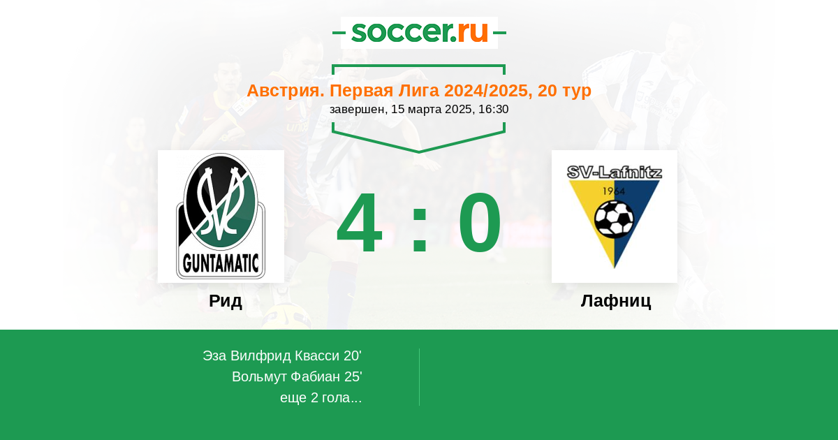 Рид - Лафниц: обзор матча 15 марта 2025