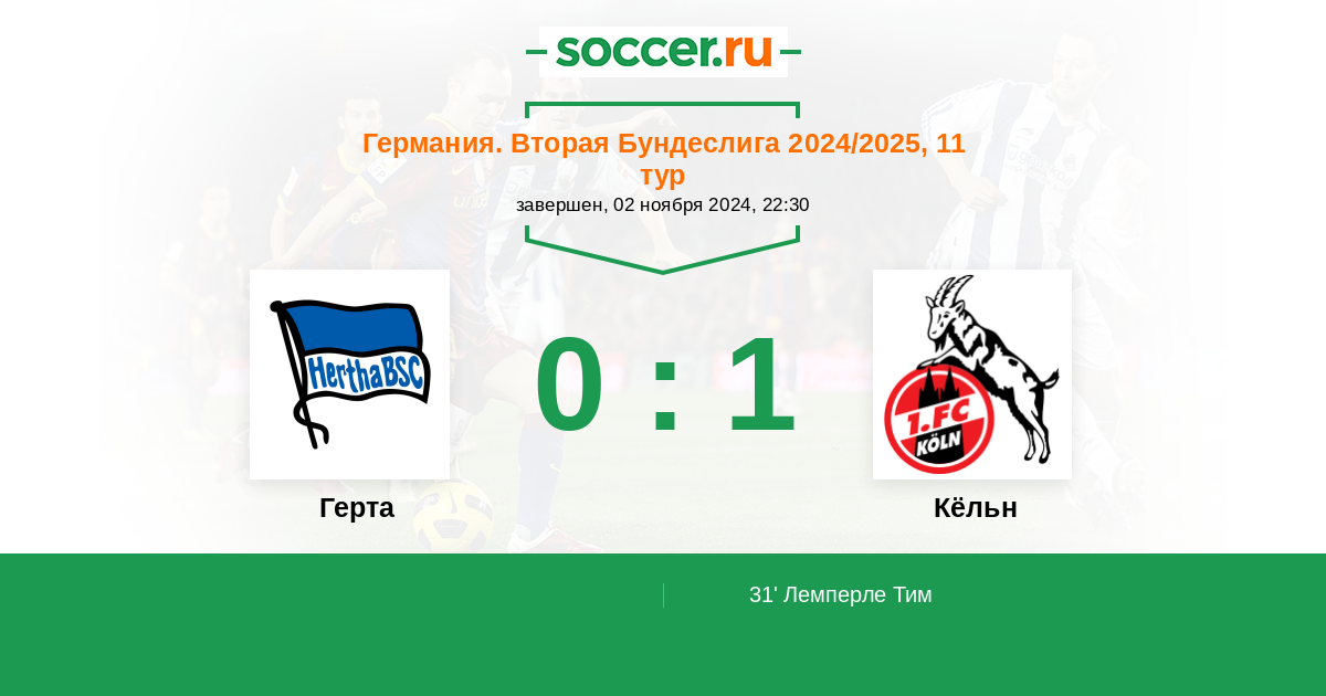 Герта - Кёльн: обзор матча 2 ноября 2024