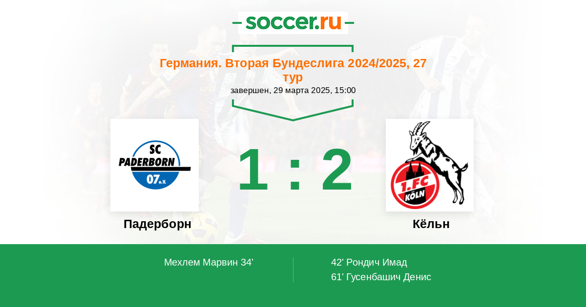 Падерборн - Кёльн: обзор матча 29 марта 2025