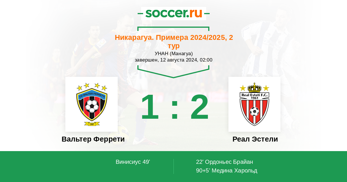 Вальтер Феррети - Реал Эстели: обзор матча 12 августа 2024