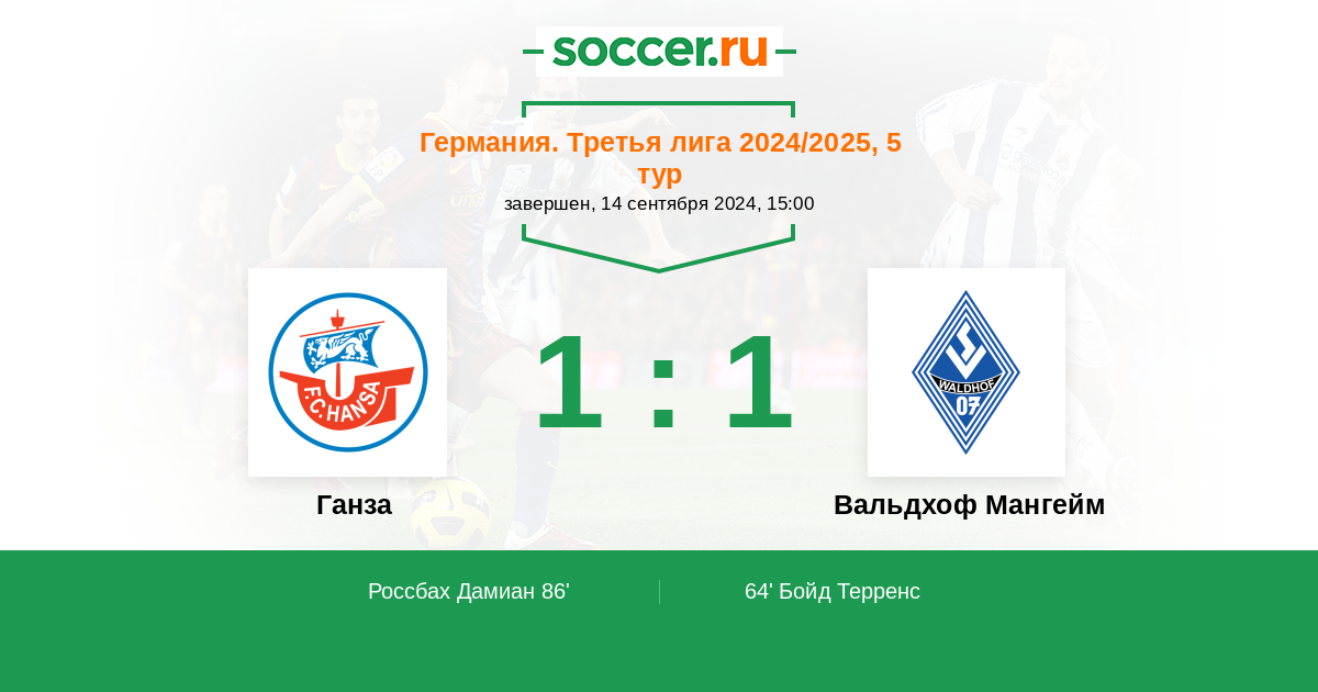 Ганза - Вальдхоф Мангейм: обзор матча 14 сентября 2024
