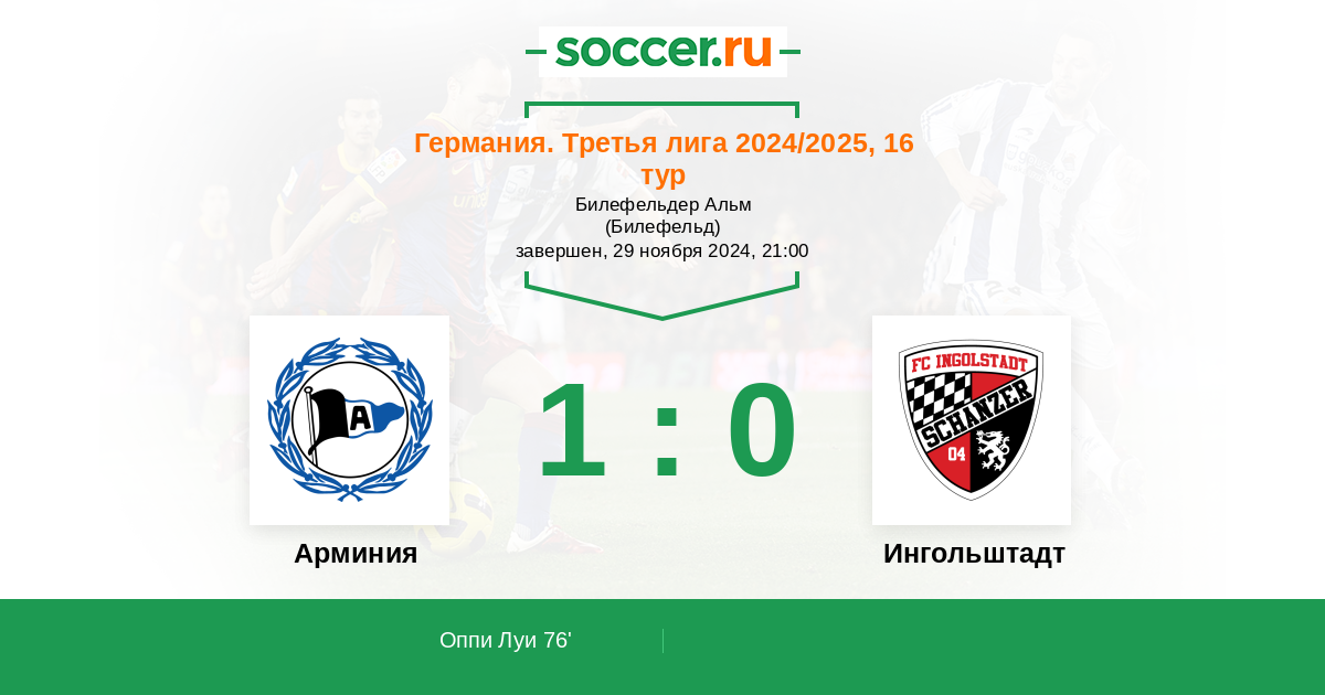 Арминия - Ингольштадт: обзор матча 29 ноября 2024