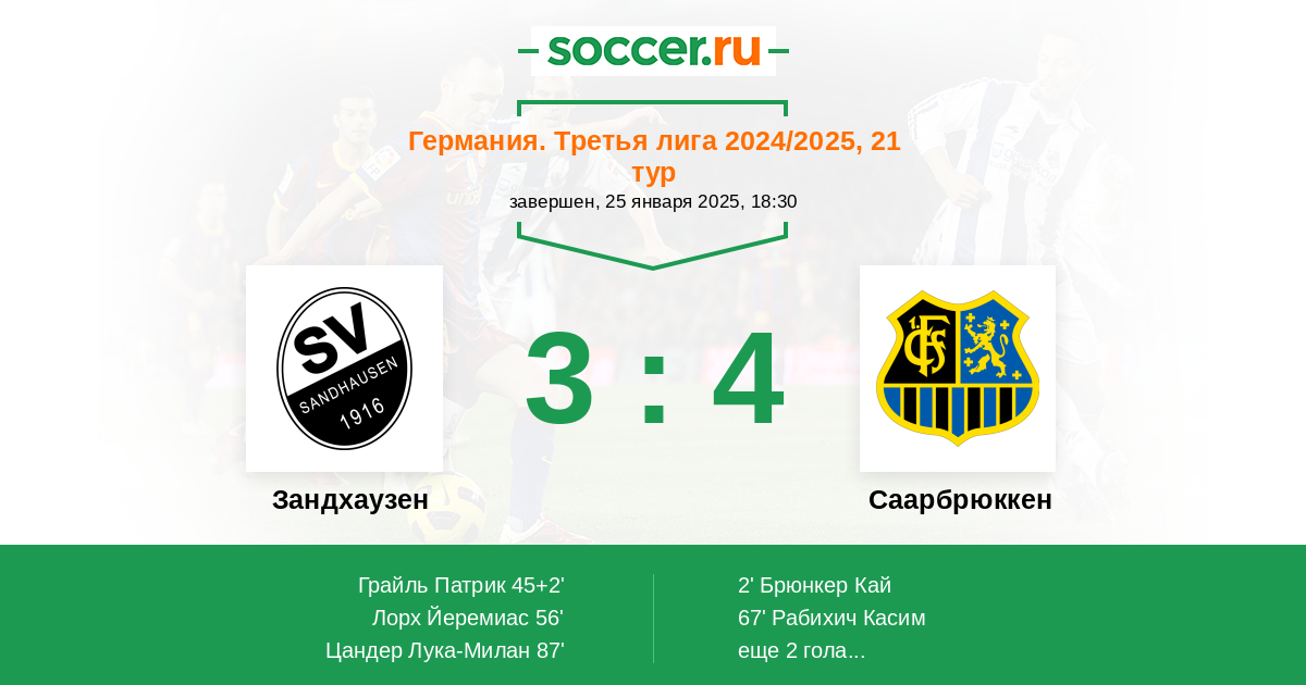 Зандхаузен - Саарбрюккен: обзор матча 25 января 2025