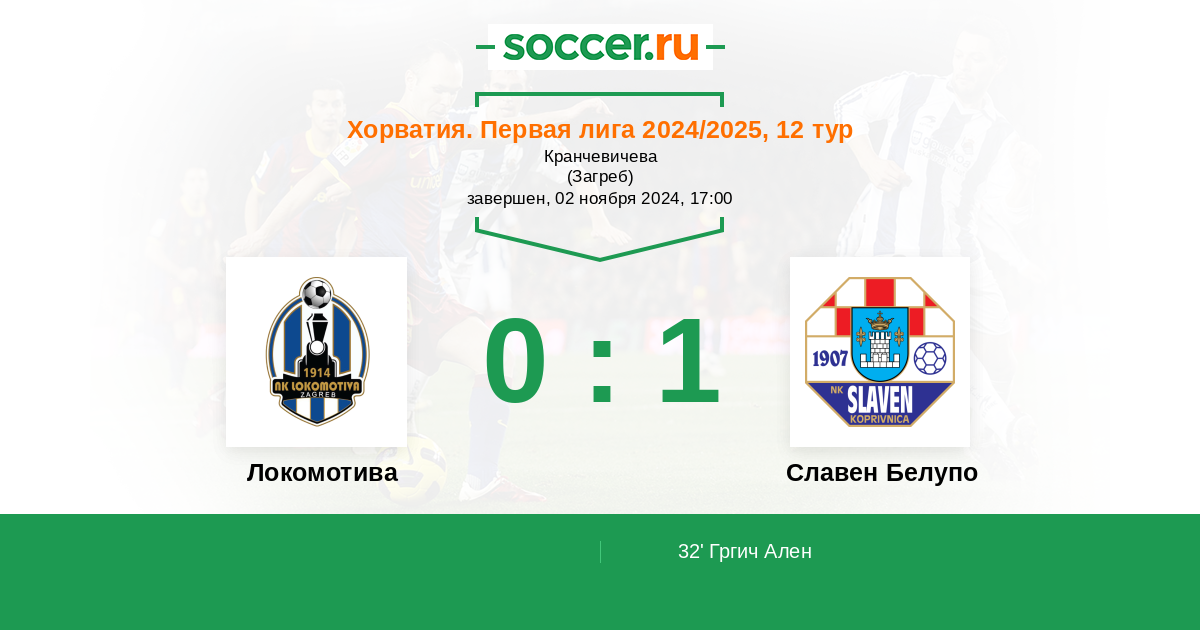 Локомотива - Славен Белупо: обзор матча 2 ноября 2024