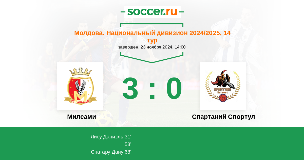 Милсами - Спартаний Спортул: обзор матча 23 ноября 2024