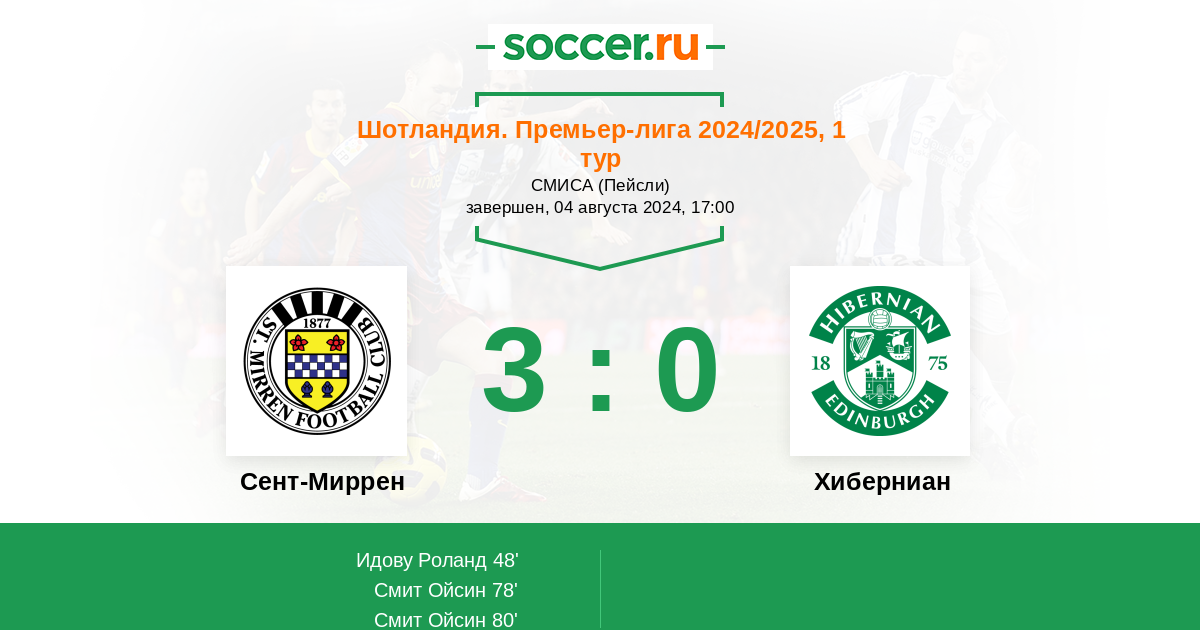Сент-Миррен - Хиберниан: обзор матча 4 августа 2024