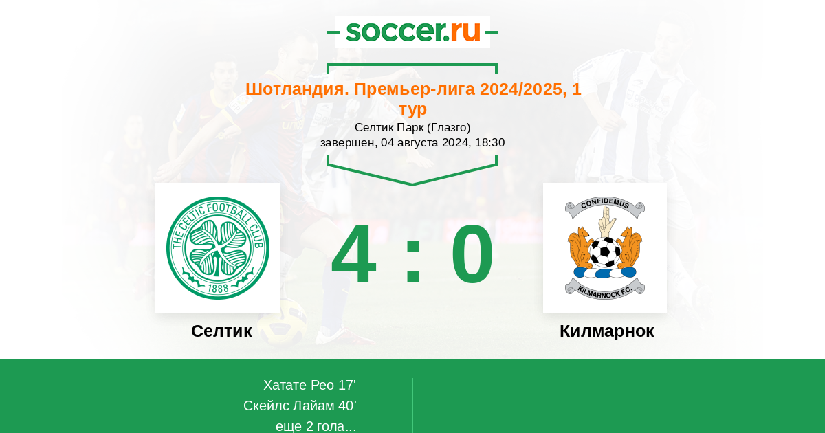 Селтик - Килмарнок: обзор матча 4 августа 2024