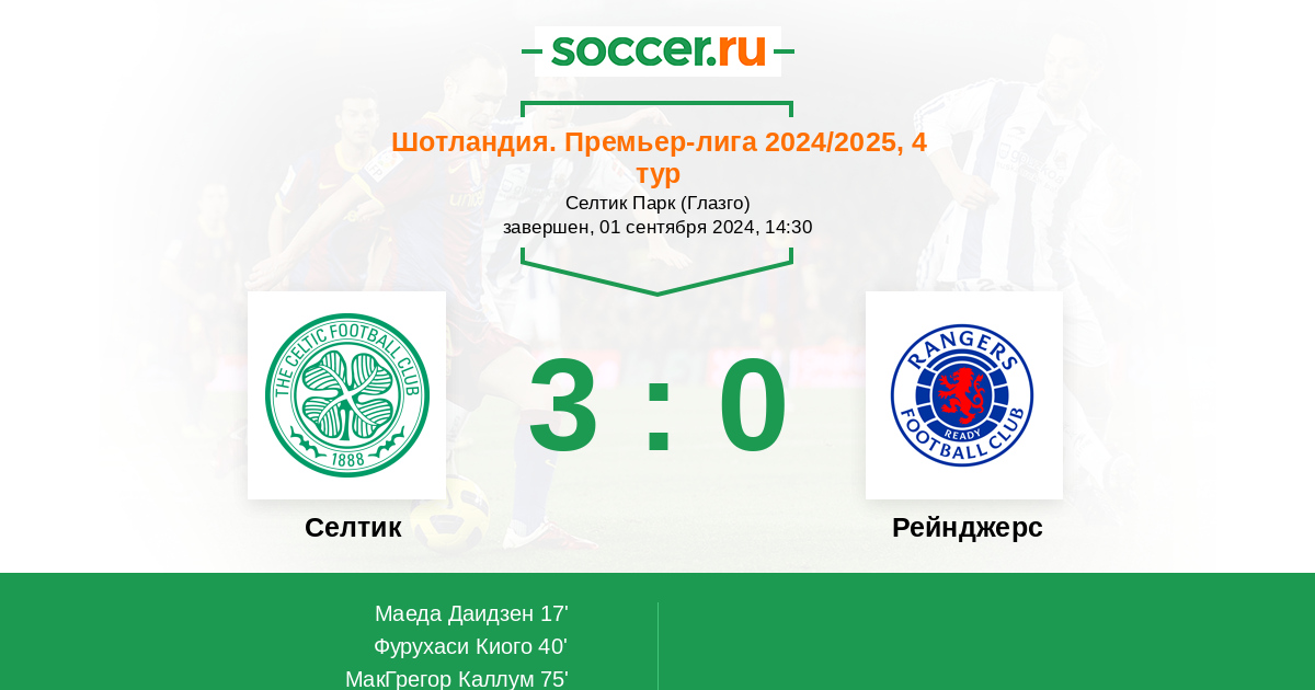 Селтик - Рейнджерс: обзор матча 1 сентября 2024
