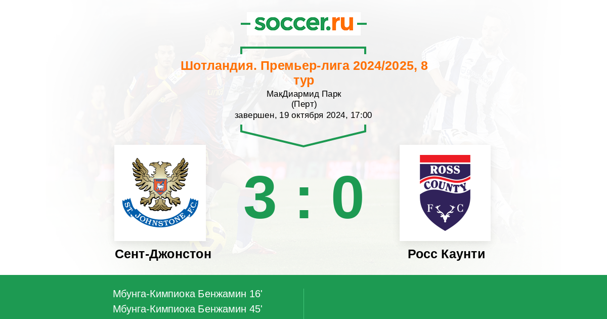 Сент-Джонстон - Росс Каунти: обзор матча 19 октября 2024