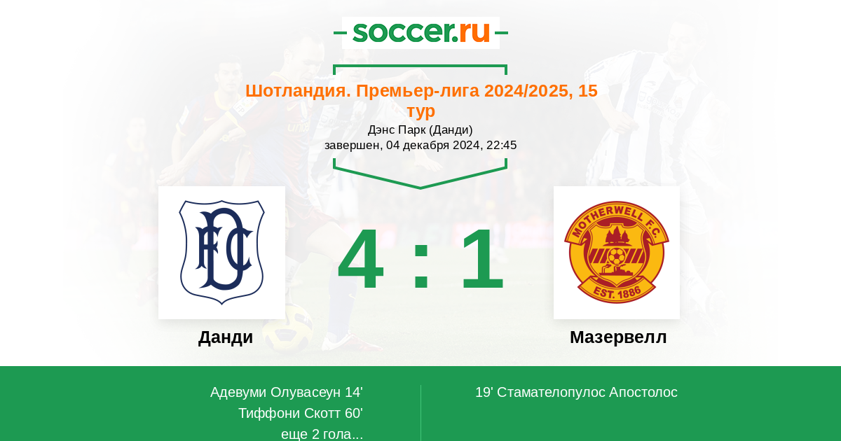 Данди - Мазервелл: обзор матча 4 декабря 2024