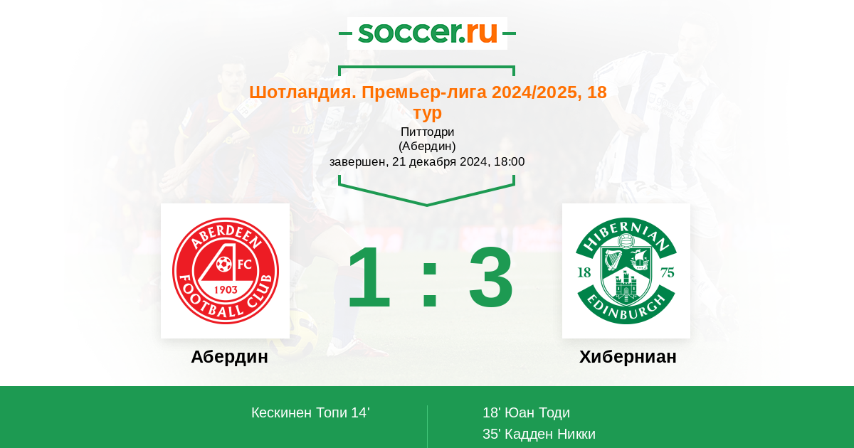 Абердин - Хиберниан: обзор матча 21 декабря 2024