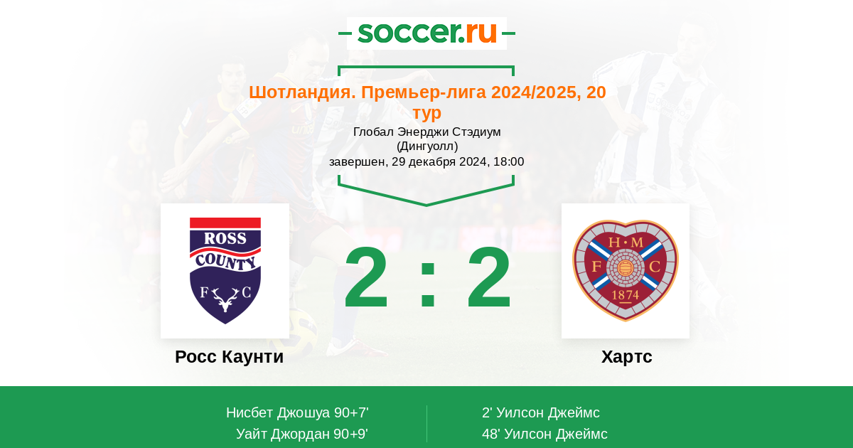 Росс Каунти - Хартс: обзор матча 29 декабря 2024