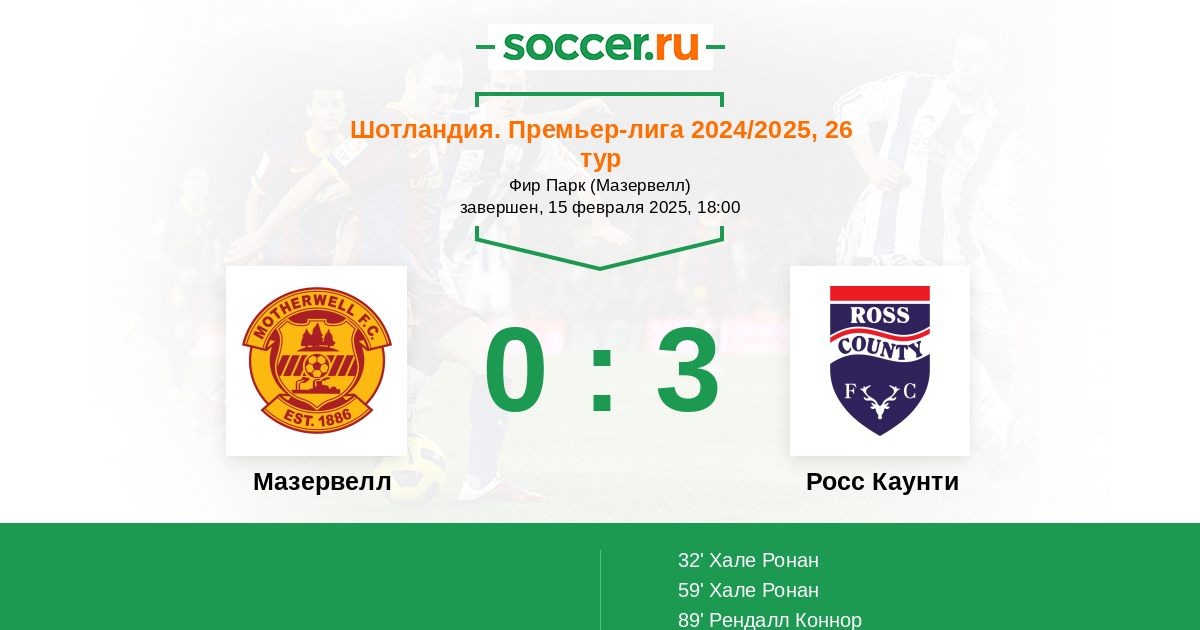Мазервелл - Росс Каунти: обзор матча 15 февраля 2025