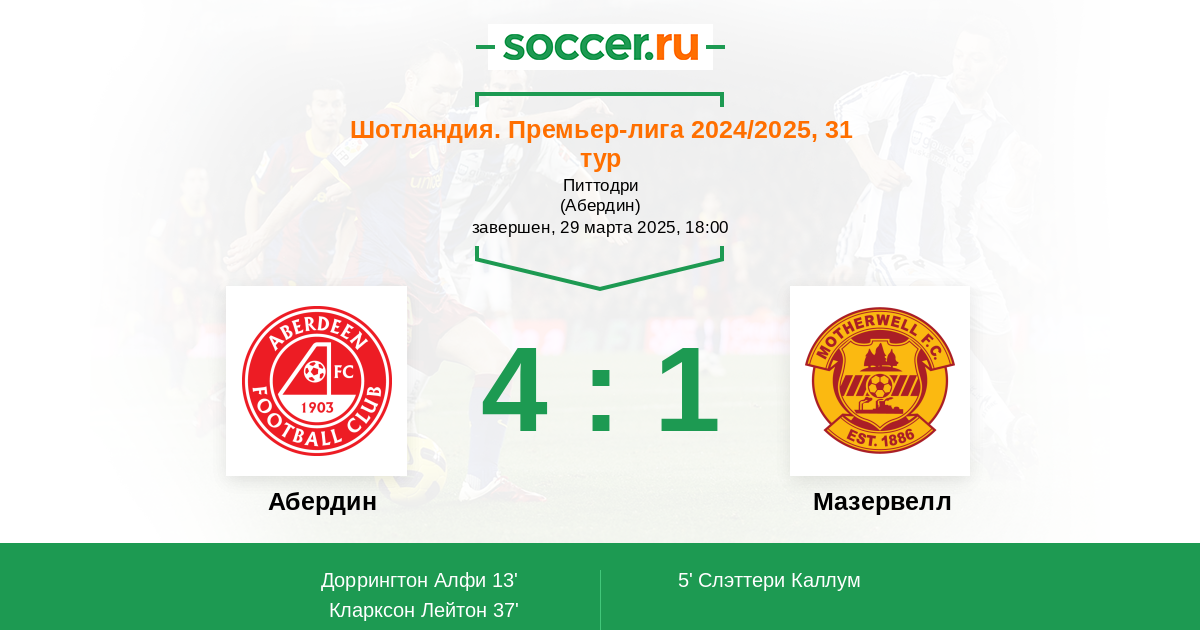 Абердин - Мазервелл: обзор матча 29 марта 2025