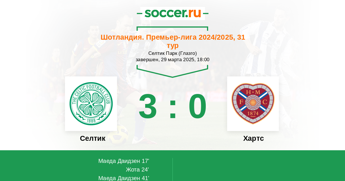 Селтик - Хартс: обзор матча 29 марта 2025