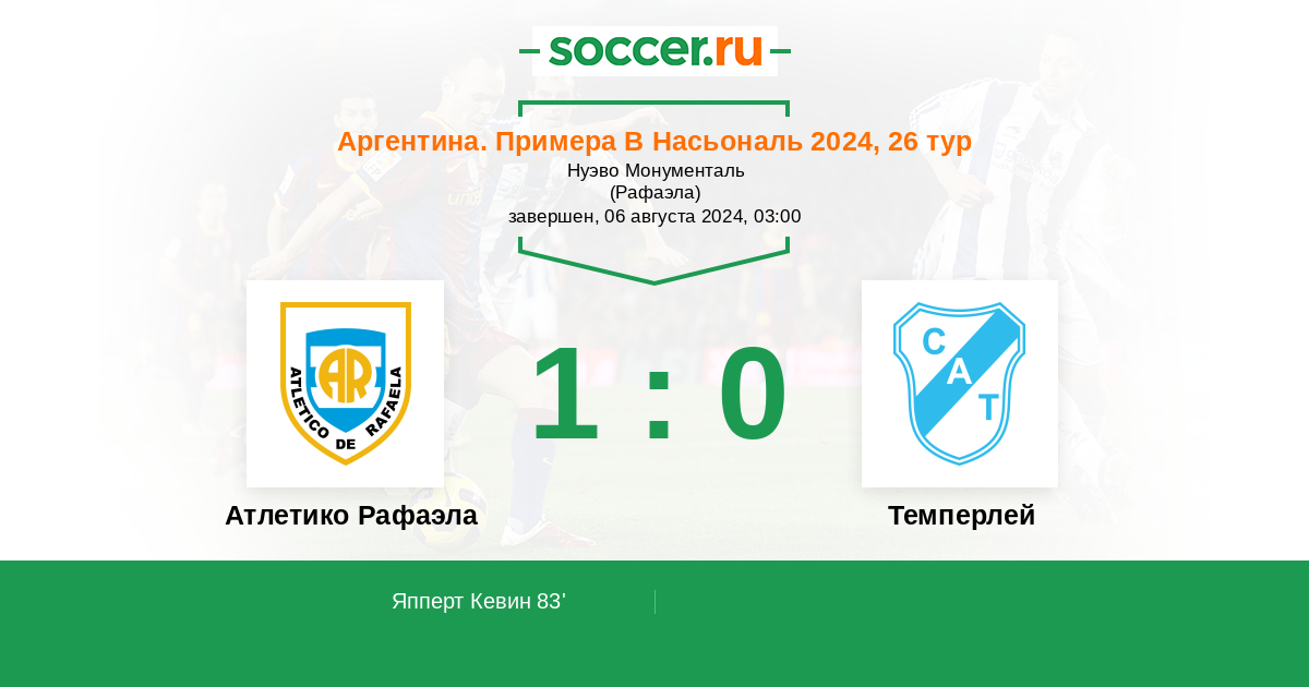 Атлетико Рафаэла - Темперлей: обзор матча 6 августа 2024