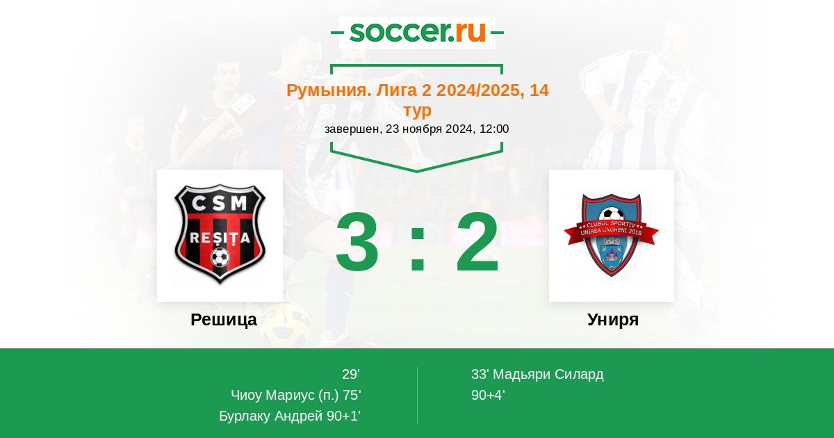 Решица - Униря: обзор матча 23 ноября 2024
