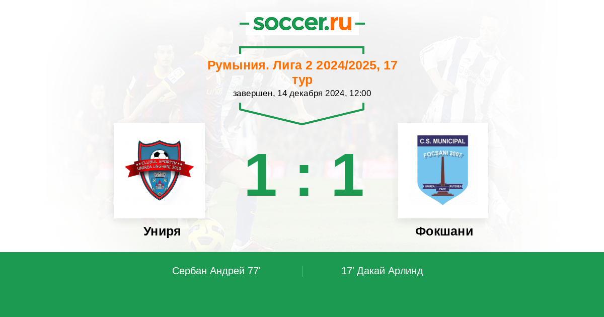 Униря - Фокшани: обзор матча 14 декабря 2024