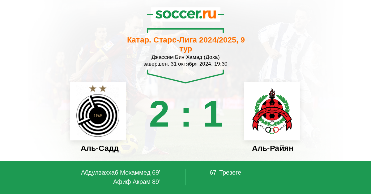 Аль-Садд - Аль-Райян: обзор матча 31 октября 2024