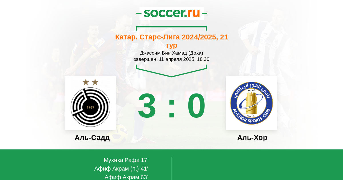 Аль-Садд - Аль-Хор: обзор матча 11 апреля 2025