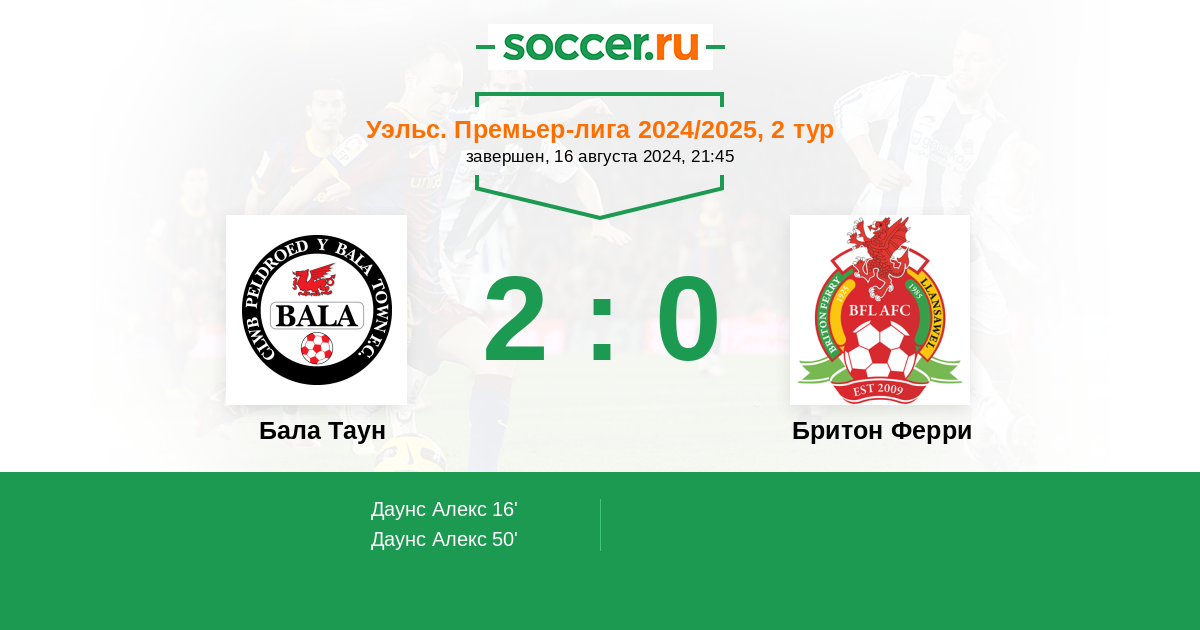 Бала Таун - Бритон Ферри: обзор матча 16 августа 2024