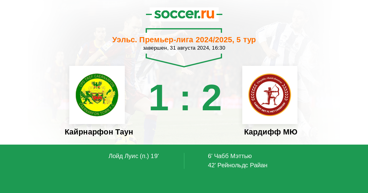 Кайрнарфон Таун - Кардифф МЮ: обзор матча 31 августа 2024