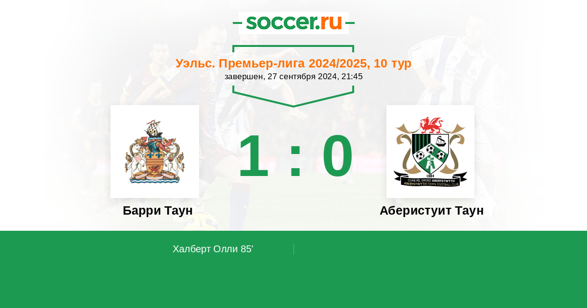 Барри Таун - Аберистуит Таун: обзор матча 27 сентября 2024