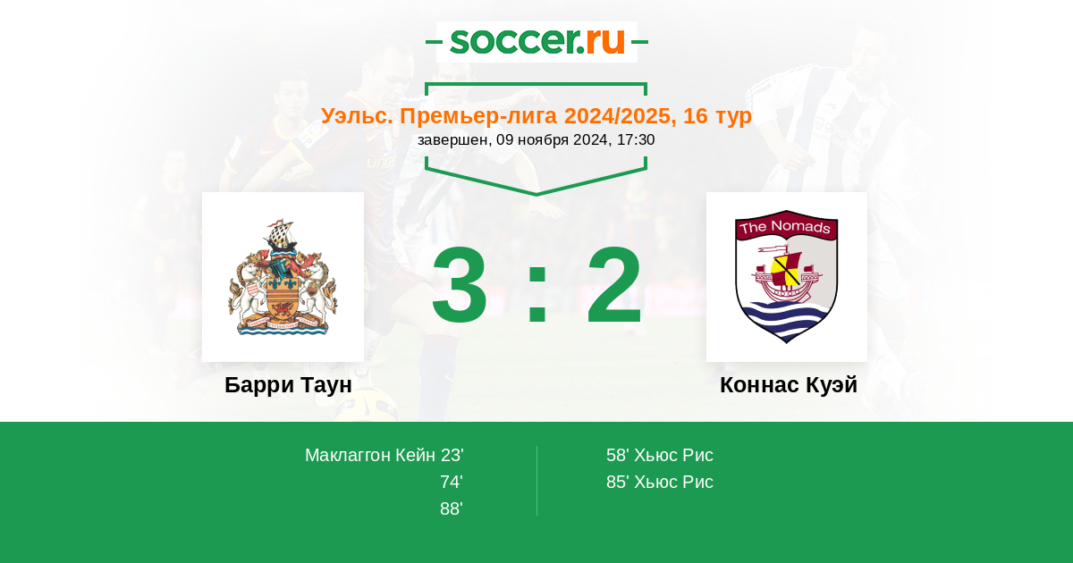 Барри Таун - Коннас Куэй: обзор матча 9 ноября 2024