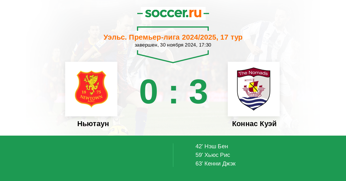 Ньютаун - Коннас Куэй: обзор матча 30 ноября 2024