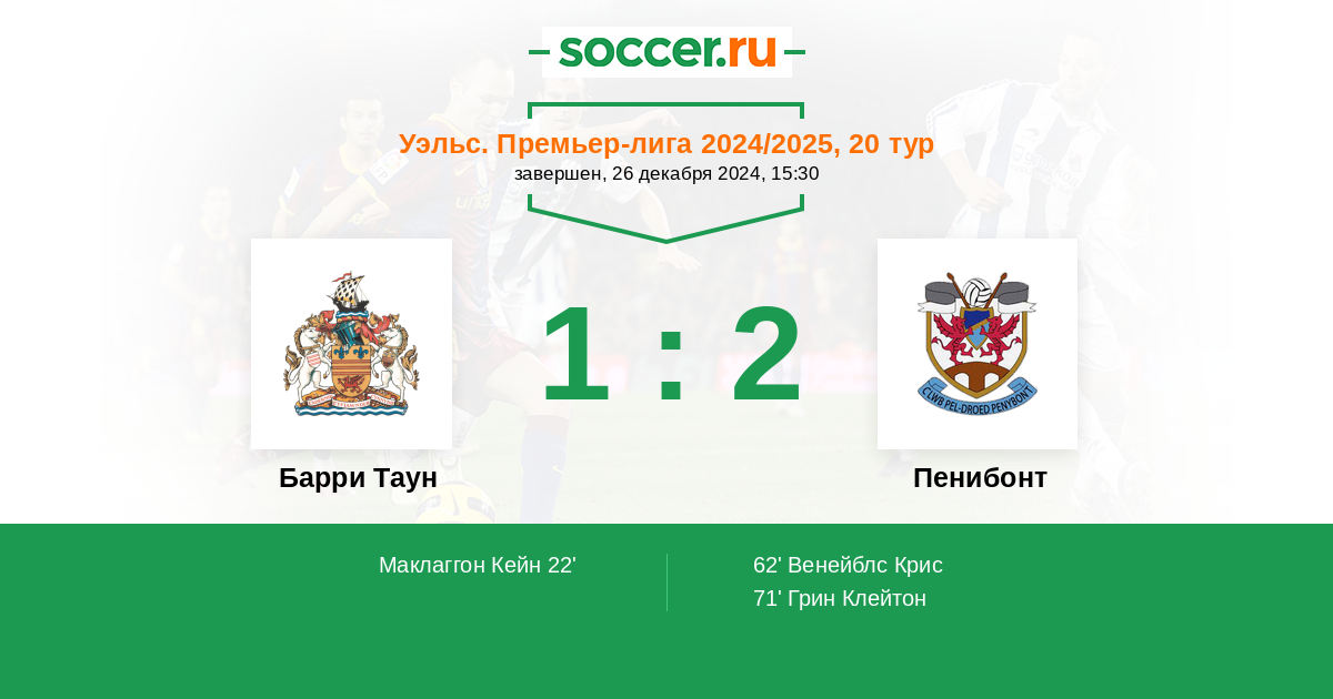 Барри Таун - Пенибонт: обзор матча 26 декабря 2024