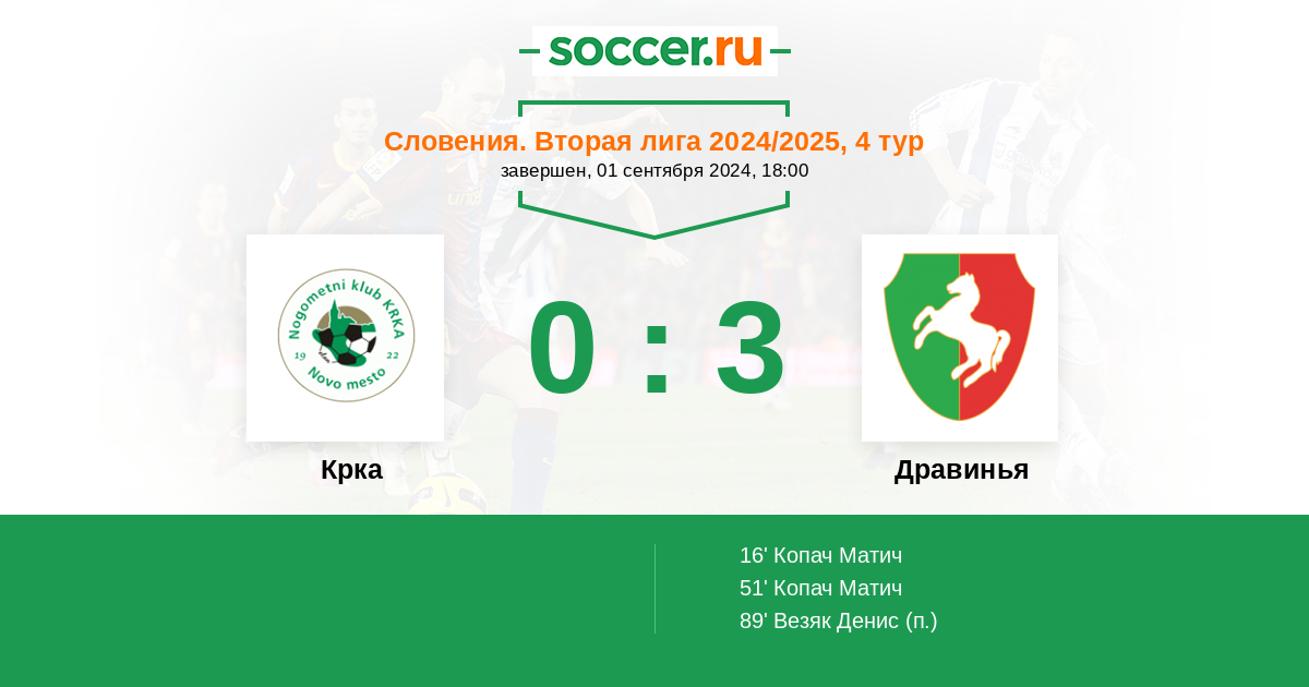 Крка - Дравинья: обзор матча 1 сентября 2024