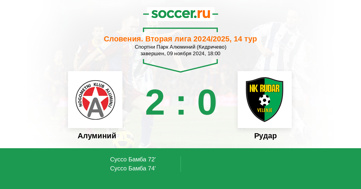 Алуминий - Рудар: обзор матча 9 ноября 2024