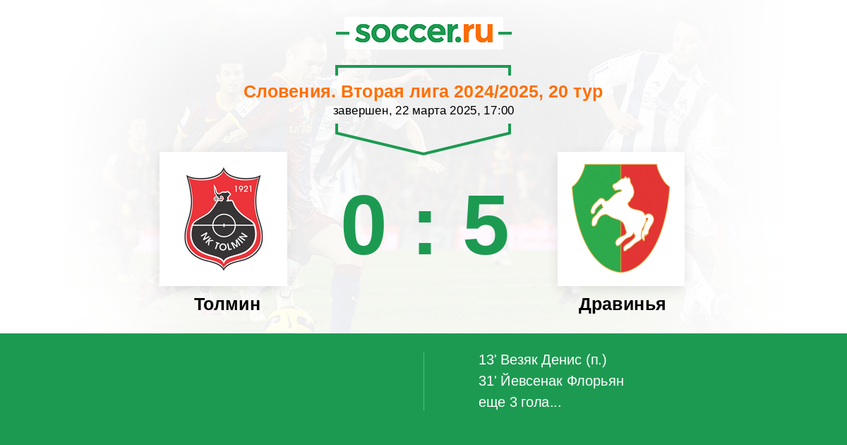 Толмин - Дравинья: обзор матча 22 марта 2025