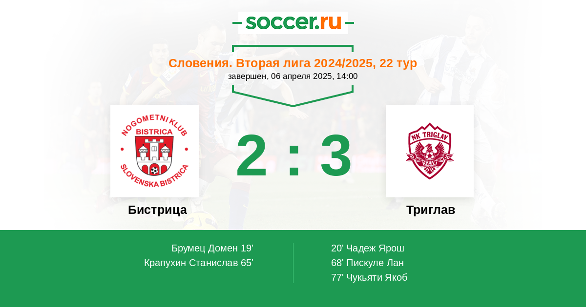 Бистрица - Триглав: обзор матча 6 апреля 2025