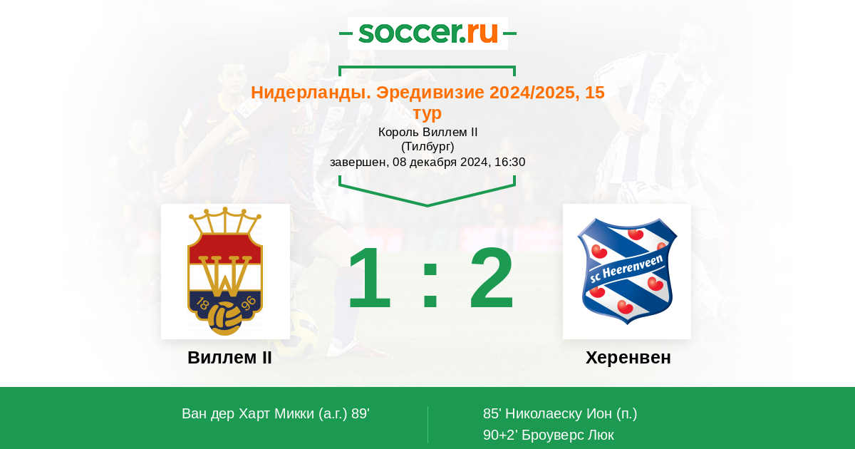 Виллем II - Херенвен: обзор матча 8 декабря 2024
