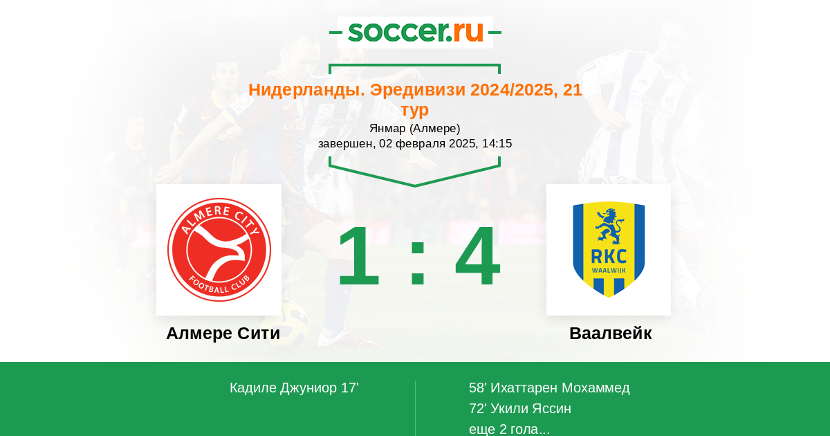 Алмере Сити - Ваалвейк: обзор матча 2 февраля 2025