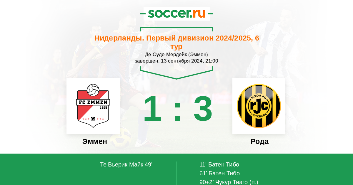 Эммен - Рода: обзор матча 13 сентября 2024