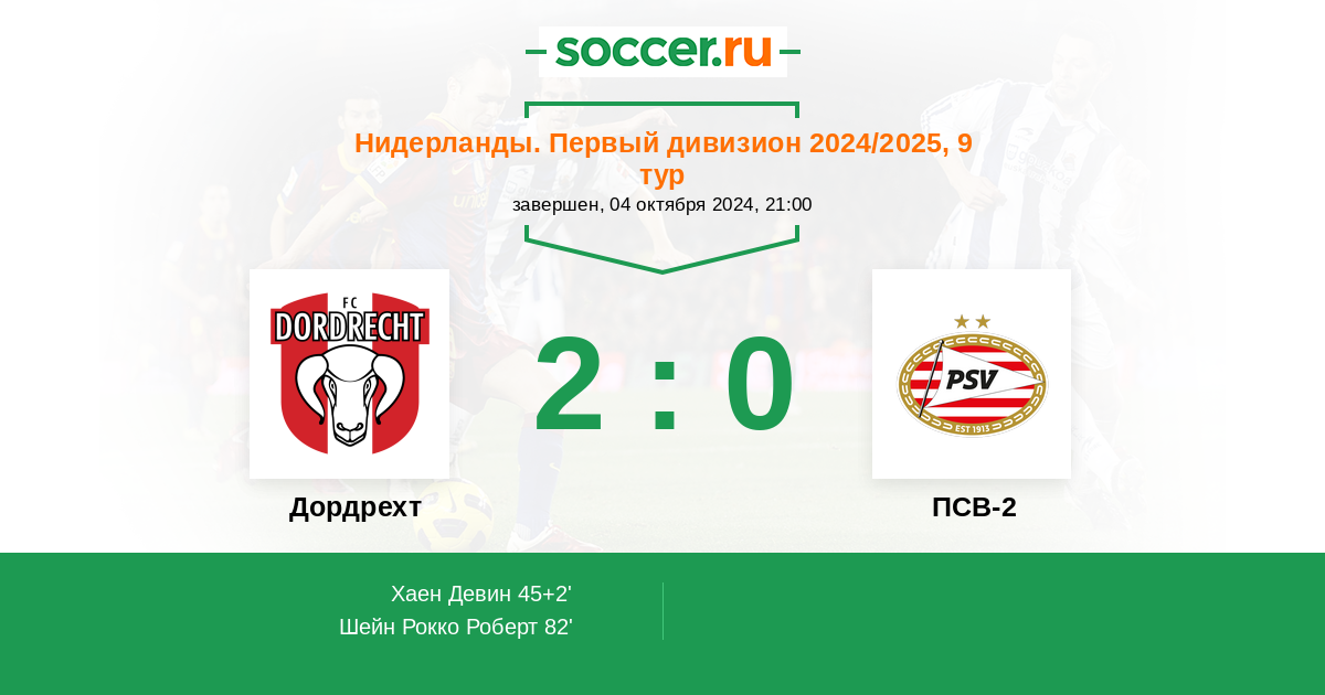 Дордрехт - ПСВ-2: обзор матча 4 октября 2024