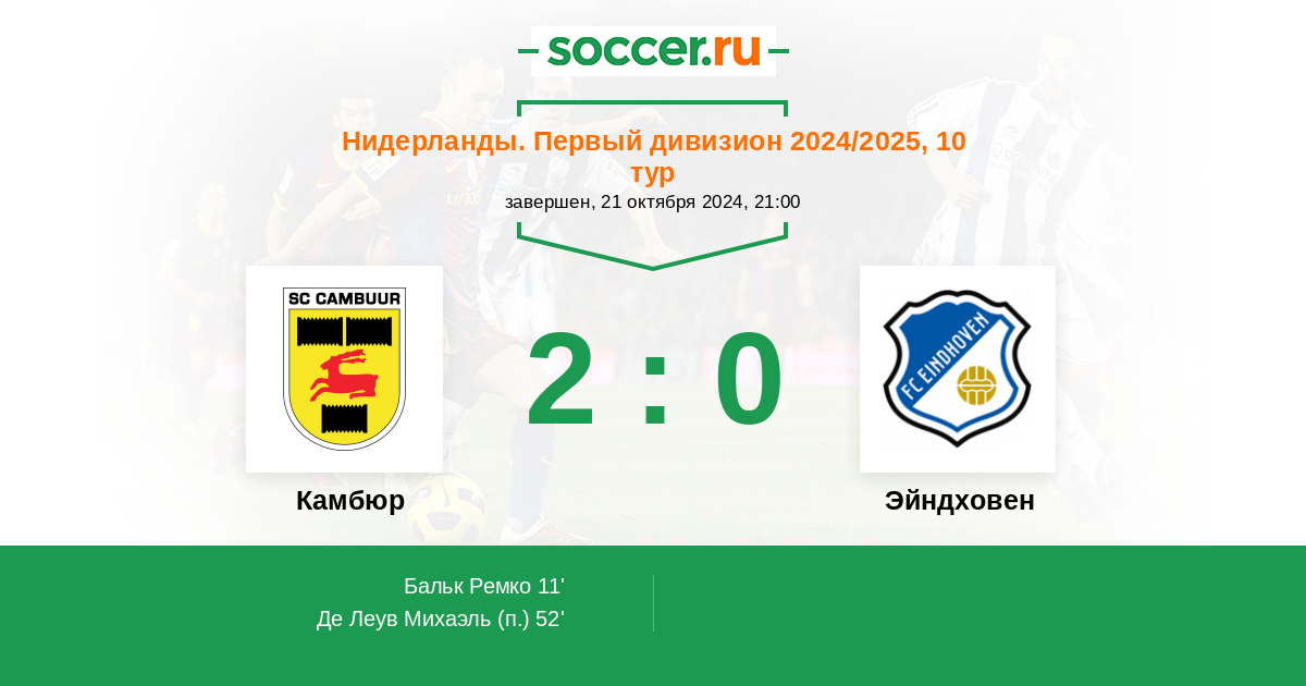 Камбюр - Эйндховен: обзор матча 21 октября 2024