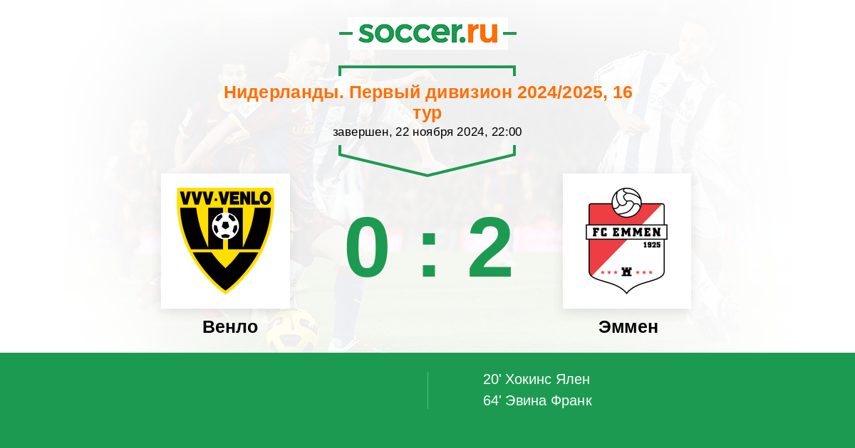 Венло - Эммен: обзор матча 22 ноября 2024