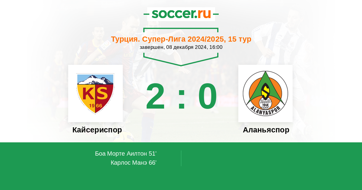 Кайсериспор - Аланьяспор: обзор матча 8 декабря 2024