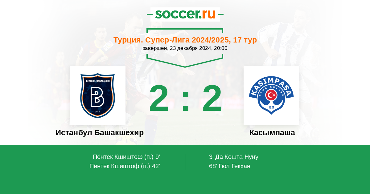 Истанбул Башакшехир - Касымпаша: обзор матча 23 декабря 2024